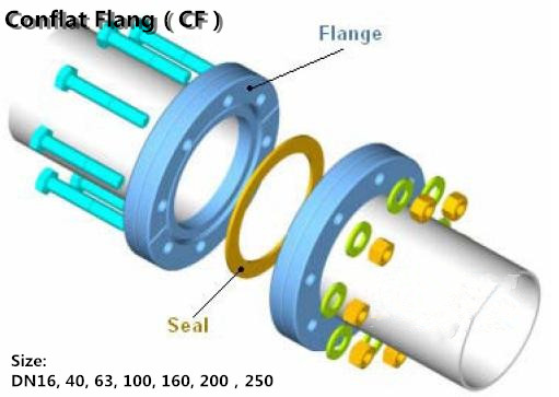 CF法蘭的英文名是Conflat Flang。它是一種用于超高真空中的法蘭連接,是一種金屬靜密封,可以承受高溫烘烤。