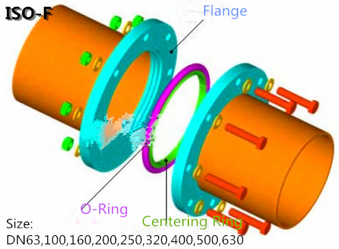 ISO-K和ISO-F真空接頭是大尺寸的真空接頭,公稱直徑尺寸包括:DN 63, 100, 160, 200, 250, 320, 400, 500 和630